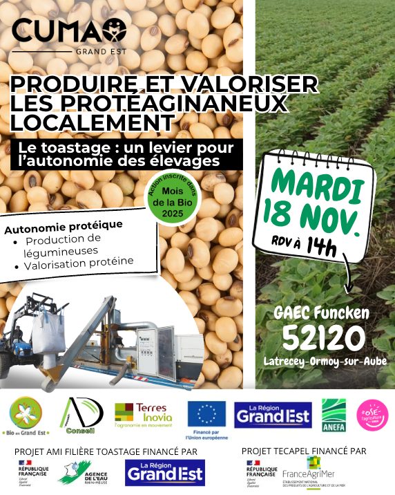 La CUMA ALT s’est dotée en 2023 d’un toasteur mobile grâce au projet de l’AMI Filière Toastage et réalise ainsi chaque année des tournées de toastage dans les fermes de ses adhérents.