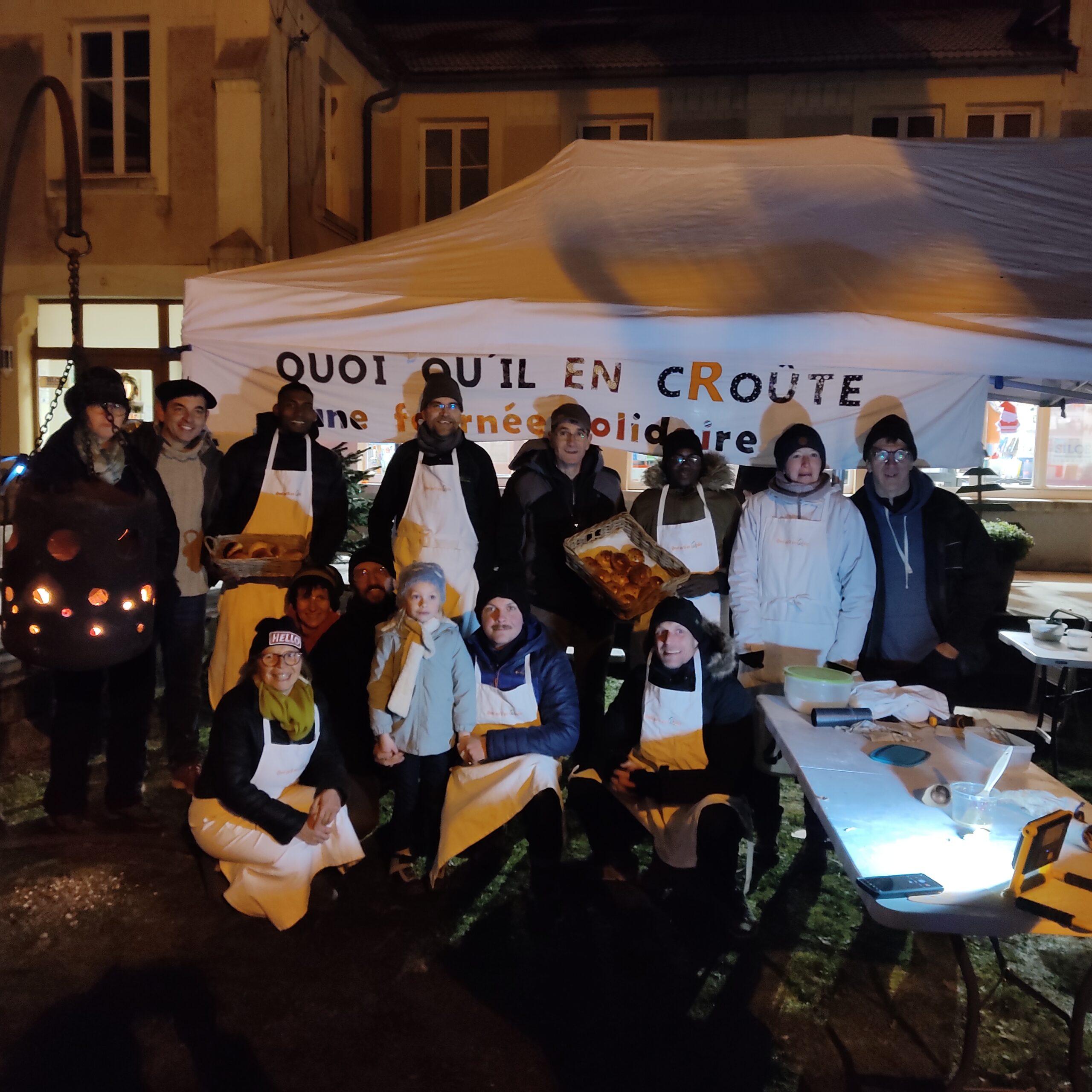 L’opération Quoiqu’il en croûte consiste à réaliser une fournée solidaire de pains et viennoiseries dont toutes les recettes seront reversées à « Un toit pour les migrants ». L’idée c’est de multiplier les pains, et de les partager avec tous ceux qui seront là. Il y aura un four à pain qui permettra de cuire sur place des viennoiseries façonnées avec les visiteurs qui le souhaitent. Notre souhait, c’est le don : chacun donnera ce qu’il a envie de donner, en fonction de ses moyens, de ses envies… Ce sera l’occasion de prendre le temps d’échanger avec de jeunes migrants pour mieux les connaître et comprendre leur parcours et leur projet ! Généralement, ils sont discrets , et ne se mettent pas en avant, pour autant ils ont des choses à dire !