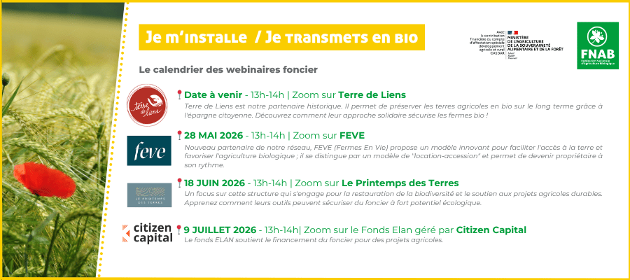 Visio-conférenceLe foncier est souvent au cœur des projets d'installation ou de transmission. Comment trouver des terres ? Comment financer son projet sans s’endetter outre mesure ? Comment assurer la pérennité de sa ferme lors d’un départ à la retraite ? Comment s'assurer du maintien de ses terres en bio ? Pour répondre à ces enjeux […]