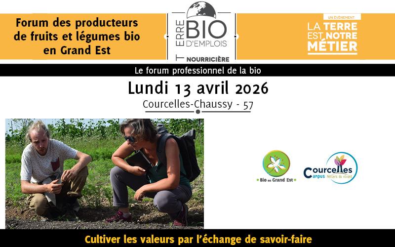 Lycée agricole de Courcelles Chaussy13ᵉ Forum des producteurs de légumes et de fruits bio du Grand Est Lundi 13 avril 2026 – Eplefpa de Courcelles-Chaussy Bio en Grand Est, en partenariat avec l’Eplefpa de Courcelles-Chaussy, a le plaisir de vous inviter à la 13ᵉ édition du Forum des producteurs de légumes et de fruits bio du Grand Est, le […]