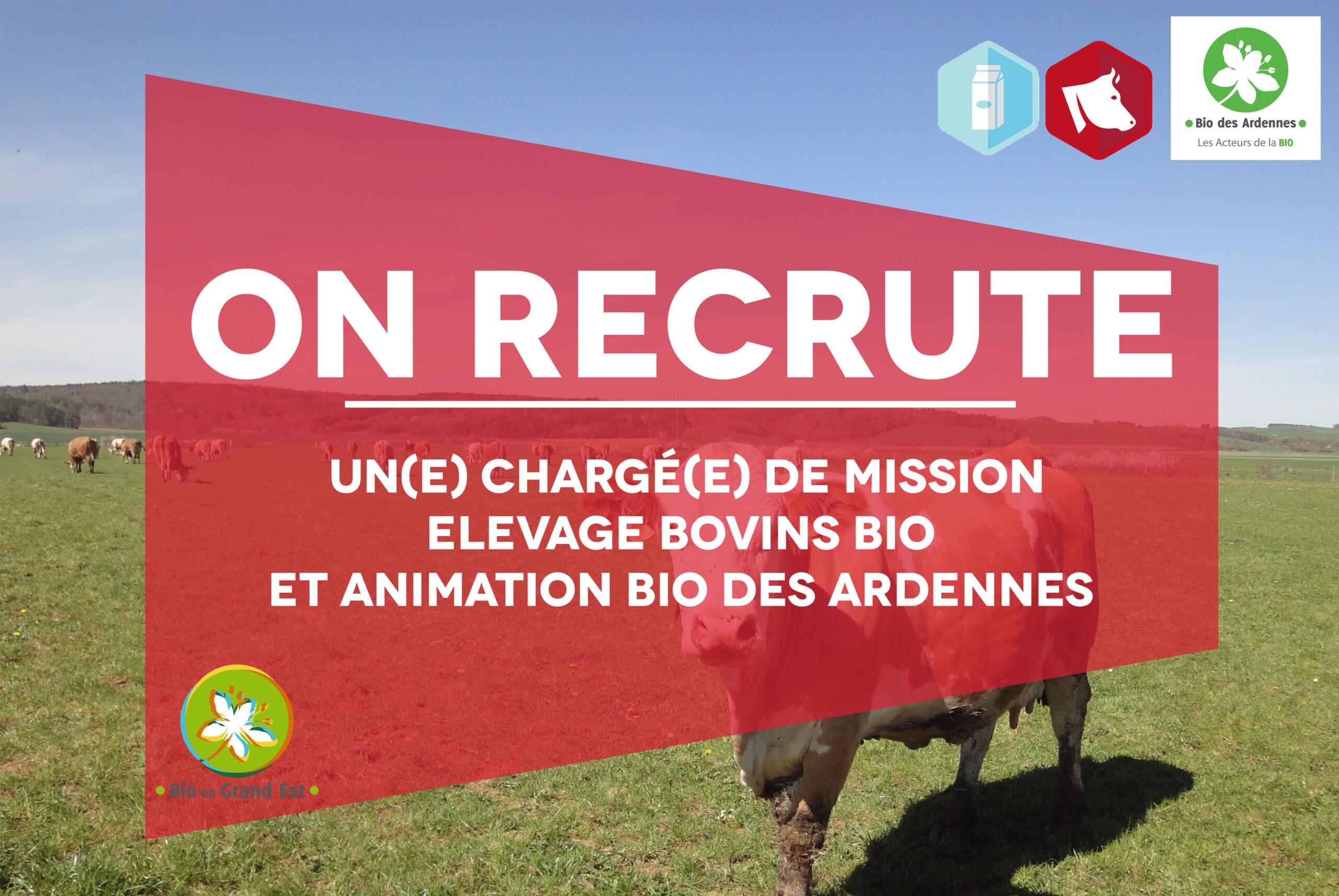 Dans le cadre du développement de nos actions d’accompagnement technique et de structuration de la filière bovine biologique régionale, Bio en Grand Est recrute un(e) Chargé(e) de mission Élevage Grand Est (Le territoire d’intervention couvre les Ardennes, le Nord-Meuse et le Pays Haut de Meurthe-et-Moselle) et Animation de Bio des Ardennes.